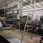 Unser neuer Geräteträger ist nun in Arbeit und nimmt Form an. Geplant ist, einen kleinen Kran an Stb, das Solarpanel oben auf den Träger aufsetzen (mit Muffen) und die Aufnahme für den Windgenerator an Bb zu installieren.