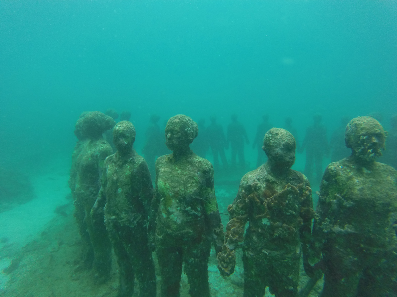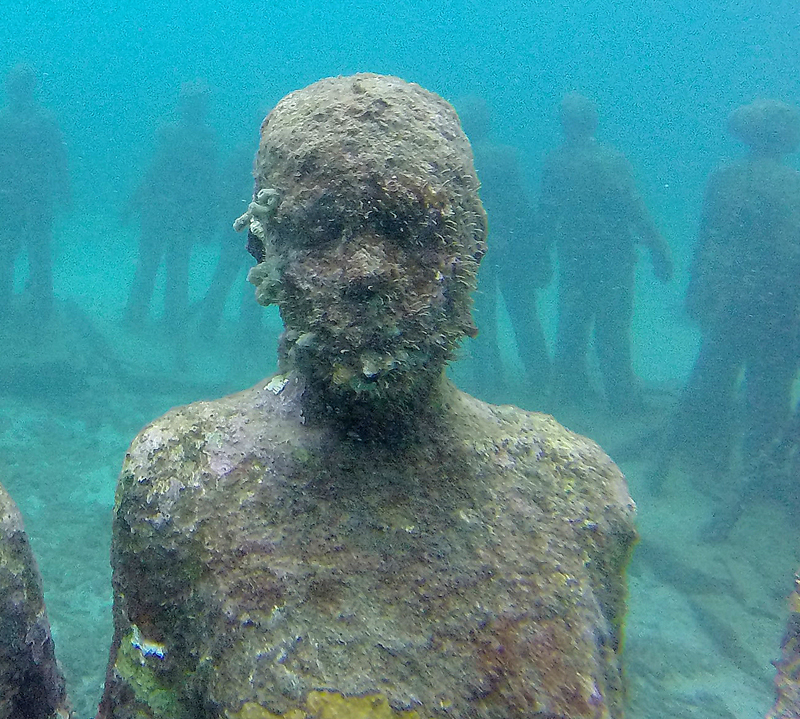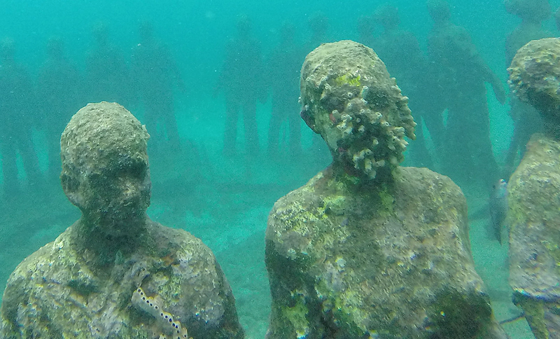 Es macht Spaß immer neue Skulpturen zu finden. Dazwischen stoßen wir auf Barrakudas und einen großen Schwarm winziger Sepien. Ein tolles Freiluft-Öko-Museum.