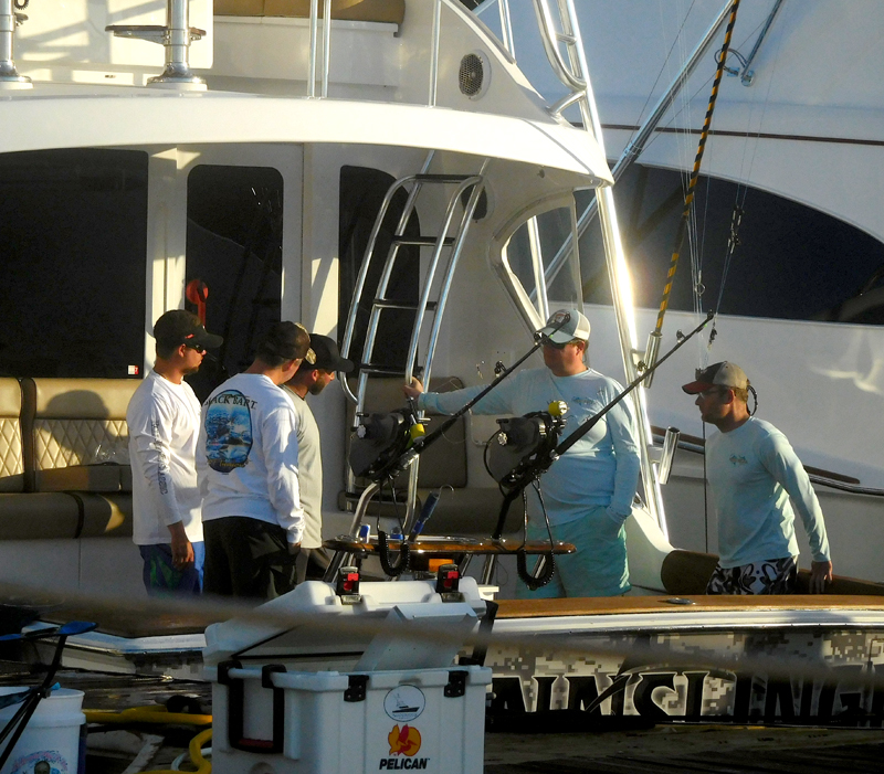 Die Powerboote fahren alle unter US-Amerikanischer Flagge. Bis zu sechs Hiwis (junge Amerikaner, ein paar Mexikaner dazwischen) kümmern sich um die Boote, Ausrüstung und Köder.