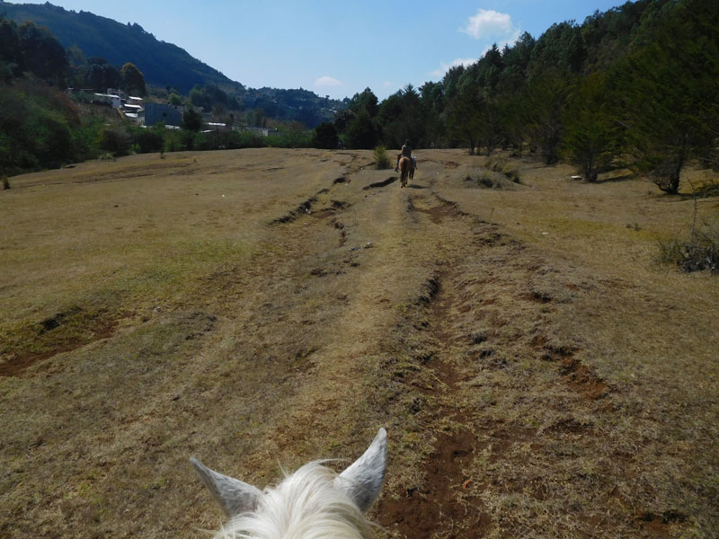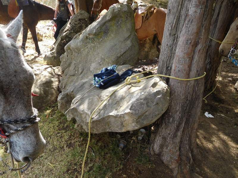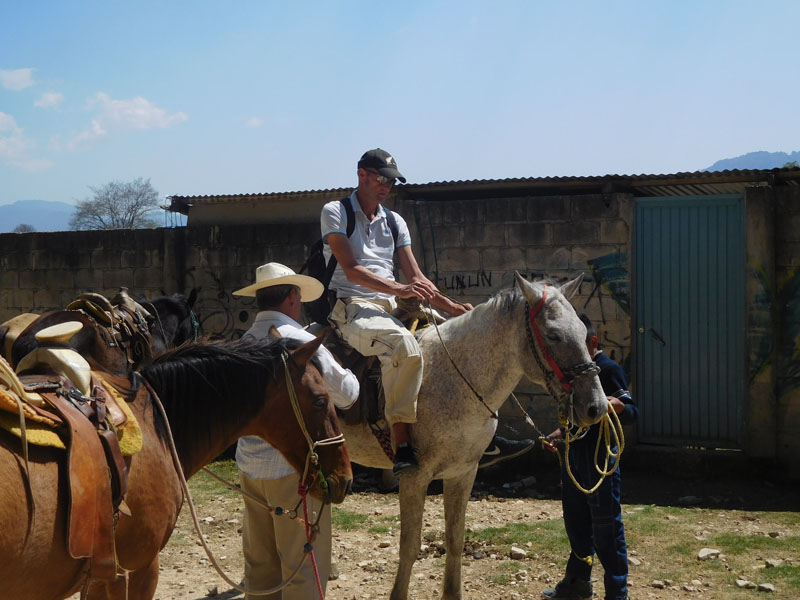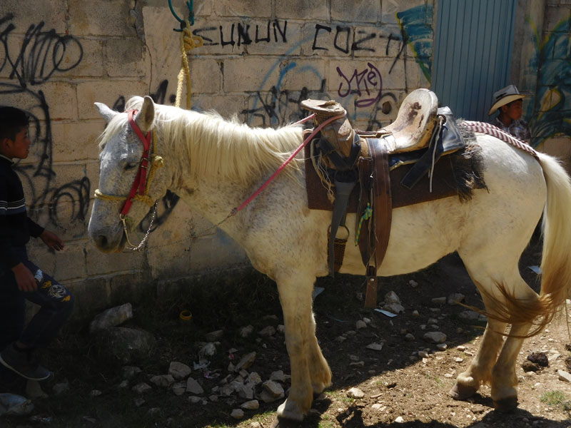 Nach einer Stunde sind wir in Chamula. Pause für Ross und Reiter. Meinen Hintern merke ich jetzt schon.