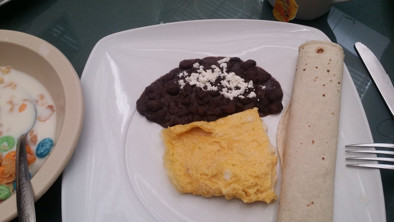 Zu fast allen Gerichten gibt es Käse (Rolf! ). Auf das Bohnenmus gebröselt, im Rührei versteckt, in fast alle Tortilla-Arten eingearbeitet.