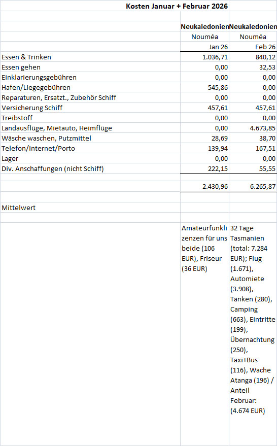 Vielen Dank für diesen tiefen, ehrlichen Einblick und den beeindruckenden Fleiß dies über die Monate und Jahre durchzuhalten! Gerade durch diese lange Zeitfolge ist eure Kostendarstellung so einzigartig und wertvoll für andere Langfahrtsegler!